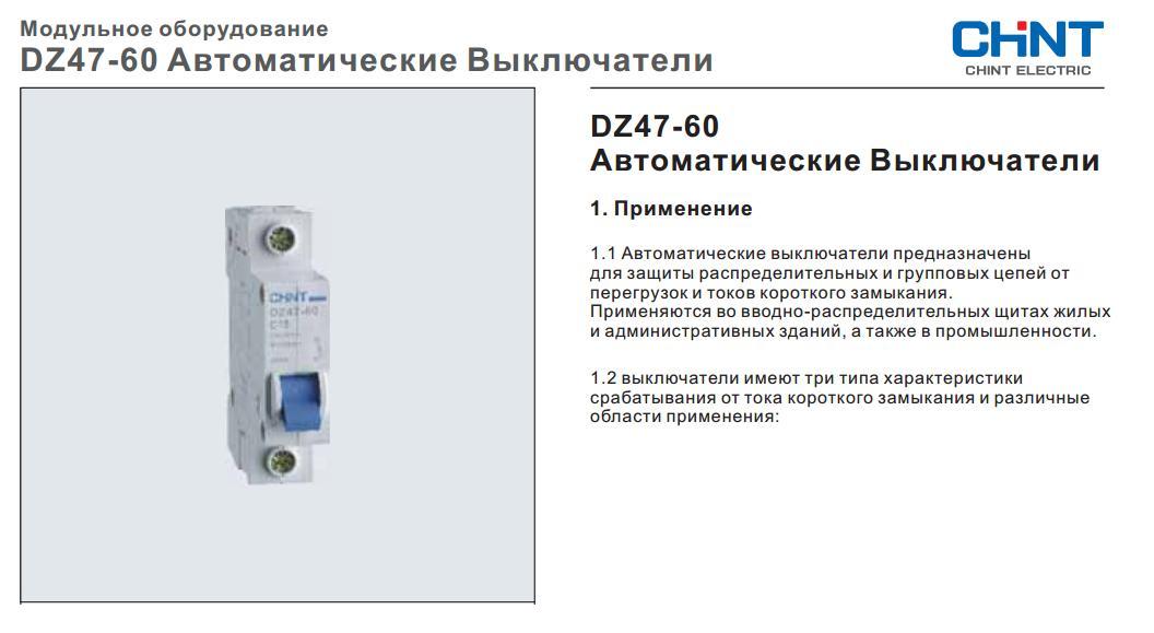 Назначение автоматических выключателей CHINT DZ47-60