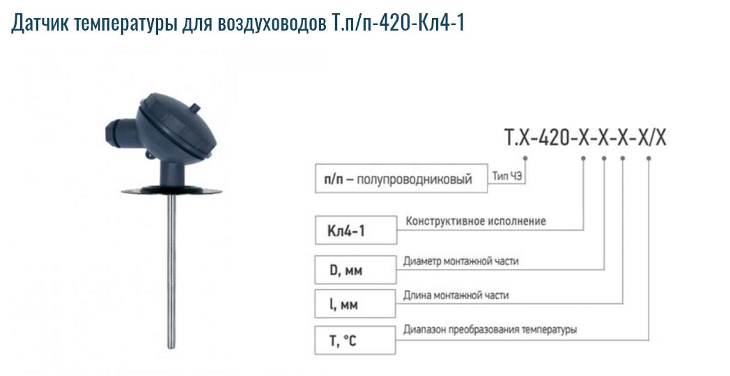 Описание Датчик температуры для воздуховодов Т.п/п-420-Кл4-1 • удобство монтажа, • низкая тепловая инерционность. ![]() Датчик температуры с унифицированным токовым выходом 4-20 мА Кл4-1 предназначен для контроля температуры в воздуховодах и других измеряемых рабочих средах, химически неагрессивных и не разрушающих материал защитного корпуса датчика. В том числе в системах отопления, вентиляции и кондиционирования (HVAC). Датчик температуры для воздуховодов Кл4-1 снабжен круговым фланцем с тремя крепежными отверстиями и резиновым уплотнительным кольцом. Для установки на воздуховоде достаточно проделать четыре отверстия: под зонд и винты и закрепить датчик при помощи трех самонарезных винтов. Напряжение питания, В 7,5 … 36 Диапазоны преобразования температуры,°C 4 мА 20 мА -40 +80 -40 +125 Предел допускаемой абсолютной погрешности не более ±0,5 % от диапазона преобразования Максимальное сопротивление нагрузки, кОм 1 Степень защиты от воздействия воды и пыли IP30 Похожие товары | |||||||