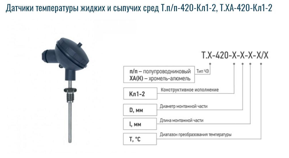 Описание Датчики температуры жидких и сыпучих сред Т.п/п-420-Кл1-2, Т.ХА-420-Кл1-2 • Диапазоны преобразования температуры: - Т.п/п–420: -40...+125°С; -40...+100°С; 0...+100°С - Т.ХА–420: 0...+300°С; 0...+500°С; 0...+800°С • Предел допускаемой абсолютной погрешности не более ±0,5% ![]() Датчики констуктивного исполнения Кл1-2 с унифицированным токовым выходом 4...20 мА предназначены для измерения температуры жидких, паро– газообразных сред, сыпучих материалов и других сред, неагрессивных к материалу защитной арматуры. Датчики с выходом 4...20мА используются тогда, когда расстояние от точки контроля температуры до прибора может достигать до 1000 м, а также совместно с приборами с унифицированным токовым входным сигналом 4 … 20 мА. В датчиках температуры используется клеммная головка диаметра 58 мм с винтовой герметично-закручивающейся крышкой без уплотнительного кольца. Все металлические детали датчиков температуры изготовлены из пищевой нержавеющей стали 12х18хH10T. Допускается изготовление подвижного штуцера из чёрного металла с покрытием цинк или никель. В датчиках температуры Т.п/п-420-Кл1-2 используется полупроводниковый элемент ТС 1047 фирмы «Microchip», в датчиках Т.ХА-420-Кл1-2 - преобразователь термоэлектрический с НСХ ХА (К) по ГОСТ Р 8.585–2001. Похожие товары | |||||||