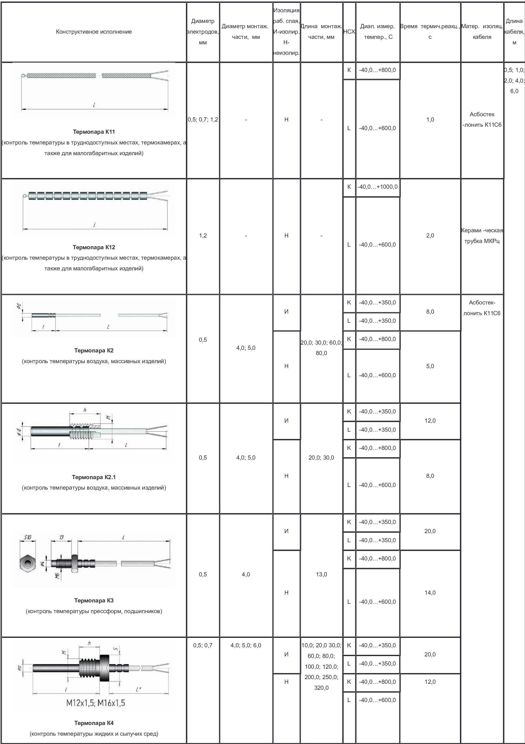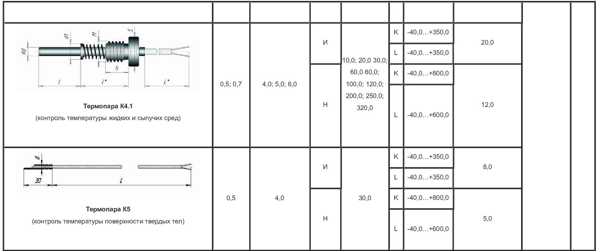 Описание НПК «Рэлсиб» выпускает термопары (термоэлектрические преобразователи) с кабельным выводом в различных конструктивных исполнениях. Термопары изготавливаются в двух исполнениях по номинальной статической характеристики: ХА(К), ХК(L). Для производства термопар используется термопарный кабель российского и зарубежного производства. Материал термопарногокабеля, материал корпуса а также способ изоляции рабочего конца термопары определяют диапазон рабочих температур. Термопара состоит из двух соединённых сваркой проволок разного состава. Место соединения называют рабочим спаем. Место соединения противоположных концов проволок с медным кабелем или клеммами прибора называют холодным спаем. Напряжение с термопары зависит от типа термопары, разницы температур рабочего и холодного спая и температуры рабочего спая. Термопары с небольшим диаметром термоэлектродного провода менее инерционны, но с другой стороны имеют меньший ресурс работы при высокой температуре. Для подключения термопар к приборам используются соответствующие характеристике конкретного датчика термопарные или термокомпенсационные провода. ![]() ![]() Похожие товары | |||||||