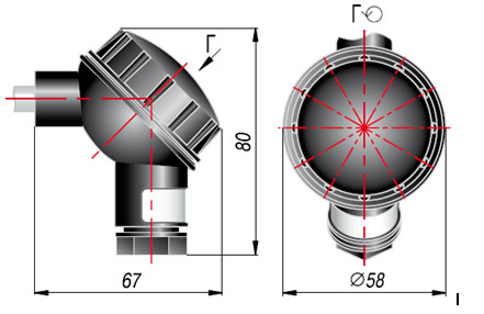 | Рис. 1. Габаритные размеры головки датчика |
