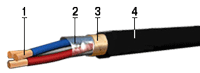 МГТФЭС 3х0,12 |  1. Токопроводящие жилы – медная луженая проволока. 2. Изоляция – фторопласт. 3. Экран – медная луженая проволока. 4. Оболочка – силикон. | 3х0,12 | 2-х или 3-х проводная |