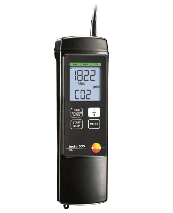 Описание Газоанализатор testo 535Газоанализатор testo 535, прибор для измерения концентрации CO2 со стационарно подсоединенным зондом, батарейками и заводским протоколом калибровкиПреимущества газоанализатора testo 535: - Долгосрочный мониторинг, основанный на расчете максимального и среднего значений измерений - Долгосрочный стабильный 2-канальный ИК-сенсор - Высокоточный, высокоэффективный - Нет необходимости в повторной калибровке Описание газоанализатора testo 535 testo 535 – эффективный измерительный прибор CO2 для оценки качества воздуха в помещении. Плохое качество воздуха в помещении, вызванное высокой концентрацией CO2 (больше чем 1000 ppm), может привести к усталости, проблемам с концентрацией внимания и болезням (Синдром хронической усталости). Измерение СО₂ (ИК) Диапазон измерений 0 ... 9999 ppm 0 ... 0,999 % Об. Погрешность 0 ... 5000 ppm: ±(75 ppm + 3 % от изм. знач.) 5001 ... 9999 ppm: ±(150 ppm + 5 % от изм. знач.) Разрешение 1 ppm 0,001 % Об. Общие технические данные Корпус ABS Гарантия 2 года Среднее значение измерения Измерение воздуха Автоотключение прибора 10 мин. Тип батареи 9 В блочная батарейка Ресурс батареи 6 ч. Тип дисплея LCD Размер дисплея Размер дисплея: две строки Температура хранения -20 ... +70 °C Вес 300 г Размеры 190 x 57 x 42 мм Рабочая температура 0 ... +50 °C Похожие товары | |||||||