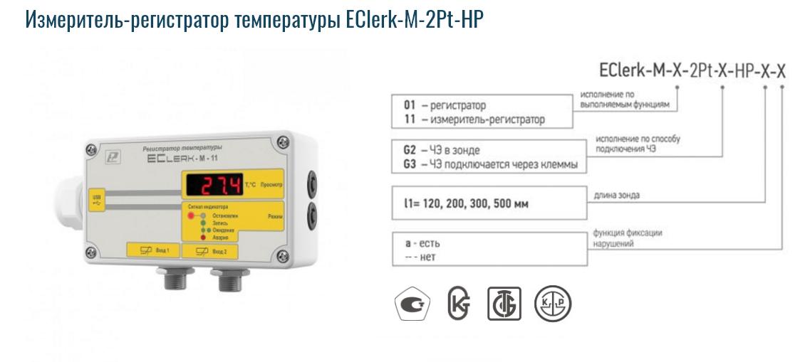 Описание Измеритель-регистратор температуры EClerk-M-2Pt-HP ![]() Измерители – регистраторы температуры автономные серии EClerk–М в герметичном пластмассовом корпусе оптимально подходят для применения в суровых условиях, например, в запылённых, неотапливаемых помещениях. Приборы применяются совместно с первичными измерительными преобразователями для контроля температуры жидкостей, газов и сыпучих продуктов. ![]() • измерение температуры в 2-х точках; • 2 канала • функция фиксации нарушения • диапазон измерения температуры –50…+200°С • объём памяти не менее 500000 значений • точность от ±(0,2+0,001Т) • герметичный корпус • яркий светодиодный индикатор (опция) • диапазон температуры эксплуатации –40…+55°С • функция GSM-модема и возможность индикации текущих значений на большом экране • современное ПО на 2-х языках для работы с данными • возможность записи с временными интервалами Измеренные значения записываются во внутреннюю память прибора для последующей обработки полученной информации на персональном компьютере. Измерители - регистраторы EClerk–М-2Pt-HP снабжены герметичными разъёмами с винтовым зажимом внешних выводов для подключения внешних термопреобразователей сопротивления типа НСХ Pt1000. Для настенного монтажа приборов рекомендуем использовать кронштейн. Регистрация значений параметров температуры осуществляется: – в автономном режиме; – в режиме «Online» с подключением к USB–порту персонального компьютера. Терморегистратор EClerk-M в зависимости от наличия или отсутствия светодиодного индикатора выполняет функции: регистратора (нет индикатора, есть память), измерителя - регистратора (есть индикатор, есть память). Для терморегистратора, имеющего функцию фиксации нарушений, при настройке можно добавить верхнюю и нижнюю границу измеряемого параметра и максимально разрешённое время нахождения вне этих границ, свидетельствующее о нарушении. Если при работе прибора измеряемый параметр находился вне установленных границ дольше заданного времени, на приборе со светодиодным индикатором фиксируется метка нарушения. Метку нарушения можно снять только при переконфигурировании прибора и удалении из него всех записанных данных. При анализе данных и формировании Отчёта для данного прибора действует защита от изменения настроек нарушения. Похожие товары | |||||||