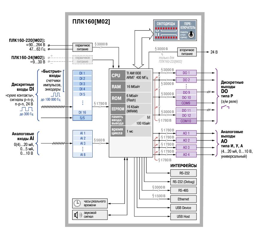 ПЛК160 [М02] контроллер для средних систем автоматизации с DI/DO/AI/AO (обновленный)