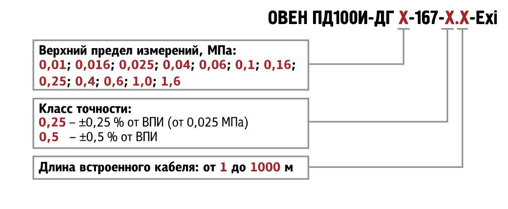 Описание ПД100И модель 167-Exi искробезопасный погружной гидростатический уровнемер Датчики ОВЕН ПД100И модели 167-Exi изготовлены в соответствии с требованиями ГОСТ Р МЭК 60079 к взрывозащищённому электрооборудованию группы II и представляют собой преобразователи гидростатического давления столба жидкости (уровня) с измерительной мембраной из нержавеющей стали и встроенным гидрометрическим кабелем. ![]() Данная модель имеет степень пылевлагозащиты IP68. Для связи сенсора с атмосферой в кабеле присутствует капилляр. Съёмный защитный колпачок предохраняет измерительную мембрану («открытый порт» М20×1,5) от механических повреждений. Преобразователи данной модели применяются в системах измерения и поддержания уровня жидкости на взрывоопасных производствах и объектах: резервуары нефтепродуктов, сточные ёмкости химических производств, бензобаки карьерных самосвалов, хранилища топливозаправочных станций, ванны гальванизации и т.д. Для более удобного монтажа преобразователя на объекте в качестве аксессуара предлагается клеммная коробка ОВЕН КК-01. Основные характеристики Непрерывное измерение гидростатического давления (уровня) различных сред (монофракционные нефтепродукты, химически агрессивные стоки, кислоты, щелочи, авиационный керосин, техническая вода и т.п.), нейтральных к нержавеющим сталям AISI 316L, AISI 304S и поливинилхлориду PVC кабеля. Преобразование давления в унифицированный сигнал постоянного тока 4...20 мА. Верхний предел измеряемого давления (ВПИ) – ряд значений от 1,0 до 100 м. вод. ст. Перегрузочная способность не менее 200% ВПИ. Основная приведенная погрешность – 0,5; 0,25 % ВПИ. Степень защиты корпуса датчика давления – IP68. Вид взрывозащиты: «искробезопасная цепь» 1 Ex ia IIC T6 Gb.