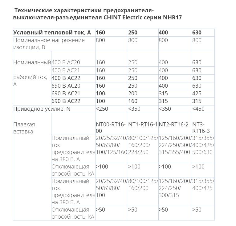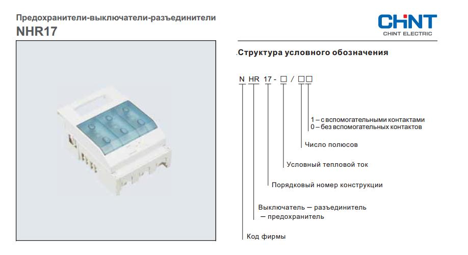 Технические характеристики предохранителя-выключателя-разъединителя CHINT Electric серии NHR17