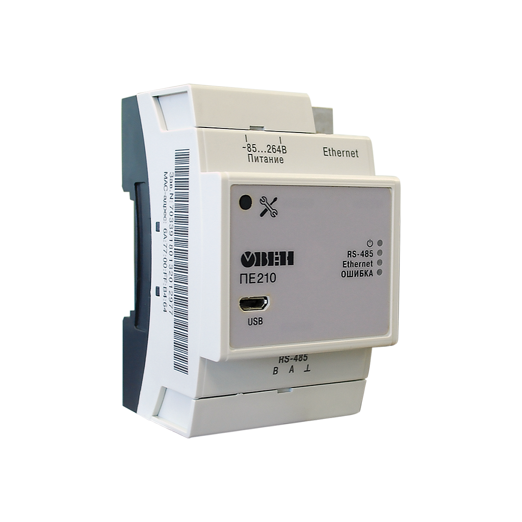 Сетевой шлюз ОВЕН ПЕ210 (RS-485 – Ethernet) для подключения к облачному сервису OwenCloud приборов ОВЕН с интерфейсом RS-485 по проводному каналу Ethernet. Для заказа доступна модификация с напряжением питания на 230 В.