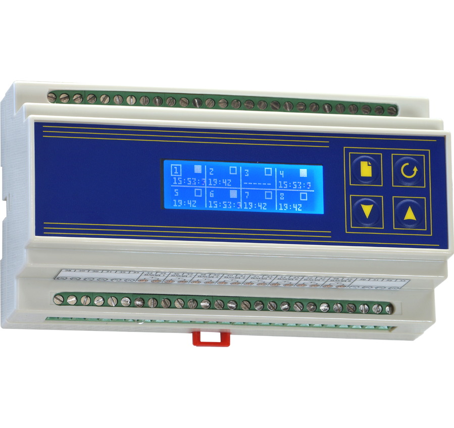 Описание Реле времени Мерадат-М24Т1Назначение реле времени Мерадат-М24Т1Программируемый восьмиканальный таймер. Прибор имеет восемь входов и восемь выходов. Управление реле осуществляется по заданным программам. Программы задаются оператором с передней панели прибора. Ход выполнения программ может зависеть от состояния входов прибора. Прибор имеет жидкокристаллический индикатор. Корпус для монтажа на DIN-рейку. Питание ~220 В. ![]() Модельный ряд Мерадат-М24Т1/8В/8Р Технические характеристикиОсновные Внешний вход8, гальванически развязаны с цепями прибора Режим работы внешнего входаКнопка/тумблер Выход релейный8 Параметры выхода3А, 220В для НР контакта. 1А, 220В для НЗ Количество программ20 (по 15 шагов) Питание (АС)220 В, 50±2 Гц Потребляемая мощность< 7 ВА Тип индикации Графический индикатор Корпус Тип корпусаКорпус для монтажа на DIN рейку Габаритные размеры160 х 92 х 60 мм Масса< 1 кг Условия эксплуатации Температура окружающей среды5– 45 °С Атмосферное давление84 – 106,7 кПа Относительная влажность воздуха (< +30 °С, без конденсации влаги) < 75% Возможности реле времени Мерадат-М24Т1Реле времени Мерадат-М24Т1 предназначено для решения задач технологических процессов, где необходимо обеспечить независимую или совместную работу до восьми реле по заданному режиму. Прибор позволяет формировать временные последовательности с помощью включения или выключения контактов реле, а также запускать или останавливать их выполнение с помощью внешних сигналов. Реле времени имеет восемь каналов (8 входов и 8 выходов). Предусмотрена возможность сохранять до 20 программ по 15 шагов каждая. Для каждого из каналов задается индивидуальная программа, запуск программы может осуществляться как индивидуально для каждого канала (каждый по своему входу), так и синхронно – для всех каналов по первому входу. Полезным свойством прибора является возможность запустить выполнение заданной программы для другого канала из программы для текущего канала. Реле оснащено восьмью внешними входами для удаленного запуска/остановки программ при помощи внешней кнопки или тумблера, а также восьмью релейными выходами для выдачи управляющих сигналов. Купить таймеры и реле времени Мерадат по выгодной ценеКупить по низкой цене таймеры и реле времени Мерадат в Ростове-на-Дону, Ростовской области, в Краснодаре и Краснодарском Крае, Ставрополе и Ставропольском Крае, Волгограде и Волгоградской области, в городах: Грозный, Нальчик, Владикавказ, Махачкала и других городах Юга России можно в нашей компании. Все покупатели могут получить бонусы и подарки! Доставка таймеры и реле времени Мерадат в города Юга РоссииМы доставим регуляторы таймеры и реле времени Мерадат в течении одного - двух дней в города: Ростов, Таганрог, Новочеркасск, Азов, Шахты, Волгоград, Элиста, Астрахань, Ставрополь, Невинномысск, Минеральные Воды, Волгодонск, Сальск, Краснодар, Тихорецк, Тимашевск, Сочи, Новороссийск, Анапа, Туапсе, Геленджик, Ейск, Майкоп, Армавир, Кисловодск, Пятигорск, Железноводск, Черкесск, Нальчик, Владикавказ, Грозный, Махачкала. Техническая документация и гарантии на таймеры и реле времениНа все виды реле времени, таймеров, счетчиков наша компания представляет полный пакет сопроводительных документов и технической документации. Все приборы имеют длительный срок эксплуатации и обеспечиваются заводс