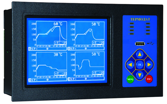 Описание Термодат-19К5 - четырехканальный ПИД-регулятор температуры и электронный самописецВнимание: снято с производства!Термодат-19К5 - четырехканальный ПИД-регулятор температуры и электронный самописец с графическим 6" дисплеем. Прибор оснащен USB-разъемом для снятия архивных данных на Flash-носитель. Прибор имеет четыре универсальных входа, предназначенных для подключения термопар или термосопротивлений, а также датчиков с токовым выходом. Разрешение 1°С или 0,1°С задается пользователем. Может управлять как нагревателем, так и охладителем. Интуитивно понятное управление обеспечивается 7 кнопками справа от экрана. Особенности ПИД-регулятора Термодат-19К54 входных канала ПИД-регулятор Электронный самописец Большой графический дисплей 6 дюймов ПИД-закон регулирования, автоматическая настройка коэффициентов Логический (цифровой) вход Выходы: релейно-симисторный, транзисторный USB-разъем Аварийная сигнализация Прочный металлический корпус, размер 235х120х68мм. Гарантия 3 года Назначение ПИД-регулятора Термодат-19К5Пид-регулятор предназначен для: Замены устаревших самописцев Измерения и регулирования температуры Аварийной сигнализации Характеристики ПИД-регулятора Термодат-19К5Технические характеристики "Термодат-19К5" Входы: Четыре универсальных входа, четыре дискретных входа; Выходы: Транзисторные выходы, реле, релейно-симисторные выходы; Считывание архива: USB-разъем; Закон регулирования: ПИД, Двухпозиционный, трехпозиционный; Диапазон температур измерения: От -270°С до 2500°С, (зависит от типа датчика); Напряжение питания: Номинальное ~ 220В, допустимое ~160…250В; Потребляемая мощность: Не более 15 Вт; Корпус: Металлический, для щитового монтажа; Дисплей:Графический жидкокристаллический экран 120х92 мм, разрешение 320х240 точек; Дополнительные индикаторы:Восемь светодиодных индикаторов режима работы; Габаритные размеры: 230х135мм. глубина 68мм; Масса: Не более 2 кг; Условия эксплуатации: От +5ºС до +45ºС, влажность от 5 до 70%, без конденсации влаги; Модели прибора 19К5/4УВ/4В/4Т/5РС/485/4М/F - 38000 руб 19К5/4УВ/4В/4Т/5РС/485/4М/F/Eth - 41000 руб Купить ПИД-регуляторы серии ТЕРМОДАТ-19 по выгодной цене в Ростове, Ростовской области и других городах Юга России можно в компании «Донские измерительные системы» Доставка ПИД-регуляторов серии ТЕРМОДАТ-19Мы доставим ПИД-регуляторы ТЕРМОДАТ-19 в течении одного - двух дней в города: Таганрог, Новочеркасск, Азов, Шахты, Волгодонск, Сальск, Краснодар, Тихорецк, Тимашевск, Сочи, Новороссийск, Анапа, Туапсе, Геленджик, Ейск, Майкоп, Армавир, Волгоград, Элиста, Астрахань, Ставрополь, Невинномысск, Минеральные Воды, Кисловодск, Пятигорск, Железноводск, Черкесск, Нальчик, Владикавказ, Грозный, Махачкала по выгодной цене. Пункты доставки ПИД-регуляторов серии ТЕРМОДАТ-19 транспортной компанией «Деловые линии».Мы доставим по выгодной цене ПИД регуляторы ТЕРМОДАТ-19 до следующих пунктов выдачи: г. Таганрог , Чучева, 1 , г. Новочеркасск , Газетная, 21, г. Волгодонск , Прибрежная, 2а, г. Краснодар, А. Покрышкина, 2/4, г. Новороссийск , с. Цемдолина, Промышленная , 1, г. Сочи ,Краснодонская, 64, г. Пятигорск , Кисловодское, 48, г. Ставрополь, Кулакова, 28 б, г. Волгоград, Гумрак, Моторная, 9 а, г. Волжский , 2-й Индустриальный, 4 а, г. Севастополь , Фиолентовское, 1, Симферополь, Урожайная, 1, г. Астрахань, Энергетиков, 5а Пункты доставки ПИД-регуляторов серии ТЕРМОДАТ-19 курьерской ко