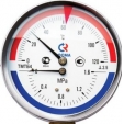 Конструктивно термоманометр объединяет деформационный манометр и биметаллический термометр. Термоманометры имеют циферблат с двумя шкалами и две указательных стрелки. Одна шкала служит для отсчета давления, другая — температуры. По расположению штуцера термоманометры могут быть осевыми и радиальными. Длина погружной части также может варьироваться по заказу потребителя. Все термоманометры комплектуются защитным клапаном. Термоманометры – это комбинированные приборы для одновременного измерения и контроля давления и температуры. Термоманометры конструктивно объединяют в себе два прибора: манометр и термометр в одном корпусе, имеет две шкалы давления и температуры, комплектуется запорным клапаном, позволяющим снимать Термоманометры без слива системы. Термоманометры получили широкое применение в различных отраслях промышленности, где необходимо осуществлять одновременный контроль над температурой и давлением жидкости и газа в трубопроводной системе. Термоманометры используются как оборудование контроля в отопительных системах, системах водоснабжения, бойлерных установках и другом оборудовании подобного направления и соответствует всем необходимым требованиям. На сайте нашей компании представлены Термоманометры осевого и радиального присоединения.
