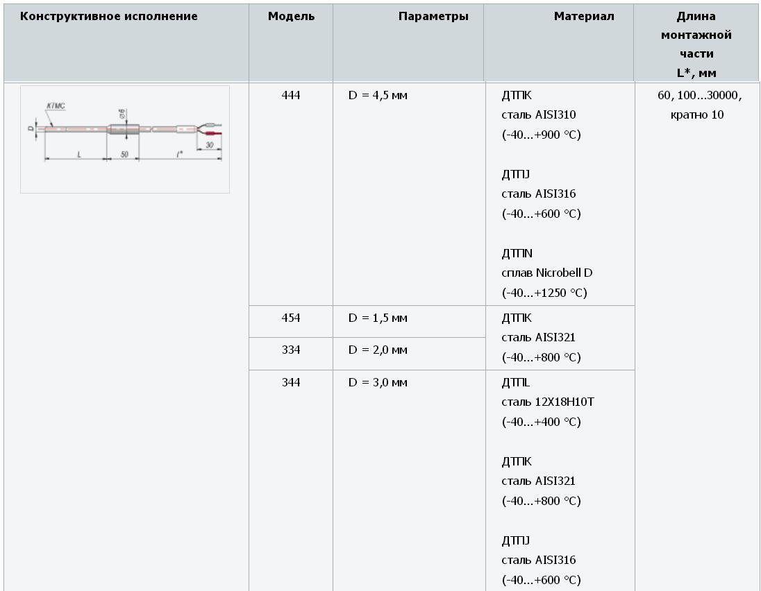 Описание Термопара ОВЕН ДТПK454Назначение ДТПK454Термопары на основе КТМС предназначены для измерения температуры жидких, твердых и газообразных сред, в т.ч. с высокой температурой (до 1250 °С), не агрессивных к материалу корпуса датчика. ![]() В качестве материалов термоэлектродов для КТМС применяются различные сплавы, что определяет характеристики термопар и возможности их применения: