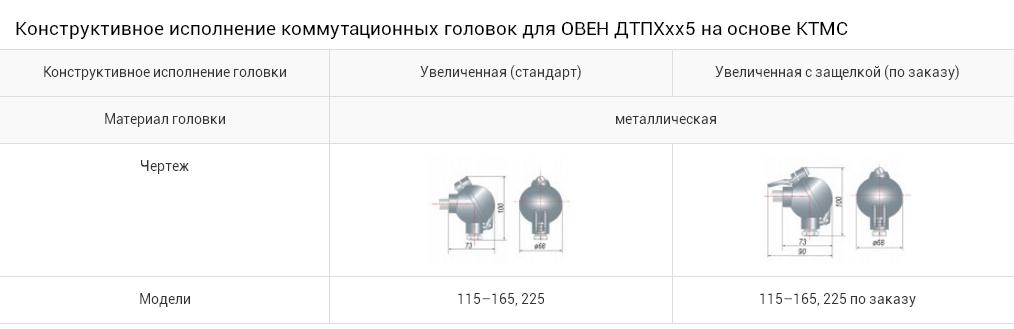 Показатель тепловой инерции термопар на основе КТМС (в защитных чехлах D=12 и 20 мм)Не превышает значений, указанных в таблице (в зависимости от вида рабочего спая и наружного диаметра погружной части D, мм):