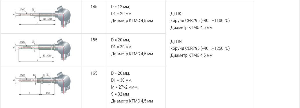 Описание Термопары ДТП КТМС высокотемпературные модульные Термопары на основе КТМС предназначены для измерения температуры жидких, твердых и газообразных сред, в т.ч. с высокой температурой (до 1250 °С), не агрессивных к материалу корпуса датчика. ![]() В качестве материалов термоэлектродов для КТМС применяются различные сплавы, что определяет характеристики термопар и возможности их применения: хромель-копель (L). Термопары обладают высокой стабильностью при температурах до 600 °С; хромель-алюмель (K). Термопары отличаются стойкостью к окислению при высоких температурах до 1100 °С; нихросил-нисил (N). Имеют высокую стабильность и широкий диапазон рабочих температур: от -40 до +1250 °С, что позволяет использовать их для замены дорогостоящих термопар из драгоценных металлов. ![]() Модернизированные высокотемпературные термопары имеют разборную конструкцию. Вставка из КТМС устанавливается в чехлы из стали ХН45Ю или чехлы из трубки МКРц. Широко применяются в металлургической и фарфорово-фаянсовой промышленностях, при обжиге кирпича, измерении температуры дымовых газов и т.п. Функциональные преимущества термопар из КТМС по сравнению с проволочными термопарами низкий показатель тепловой инерции (2 сек – для КТМС диаметром 4,5 мм) для регистрации быстропротекающих процессов; высокая стабильность и увеличенный рабочий ресурс (превышение в 2-3 раза по сравнению с обычными); возможность изгиба, монтажа в труднодоступных местах и кабельных каналах (60-100 м); разные варианты установки: приваривать, припаивать или крепить термопару (хомутом, на винт) к поверхности; выдерживают большие рабочие давления (до 150 МПа); для дополнительной защиты термоэлектродов от воздействия окружающей среды термопары могут производиться в защитных чехлах.
