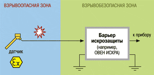Датчики с такой маркировкой можно устанавливать во взрывоопасной зоне с применением барьера искрозащиты, например барьера ОВЕН ИСКРА. Термопреобразователи выдерживают в течение 1 мин напряжение переменного тока 500 В, приложенное относительно корпуса датчика.