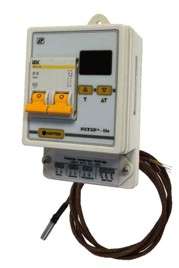 Новый терморегулятор РАТАР-02А со встроенным автоматом включения нагрузки применяется для бытового и промышленного использования, например, для контроля и поддержания температуры в небольших жилых и производственных помещениях, гаражах, складах, погребах, для управления нагревателями, термокамерами, тепловентиляторами, ИК-нагревателями, конвекторами и т.д.. Терморегулятор применяется в качестве блока управления тепловыми электрическими котлами, водонагревателями, электрическими термокамерами и другими системами. Терморегулятор выпускается с выносным датчиком температуры, на основе полупроводникового чувствительного элемента ТС1047 фирмы «Microchip».
