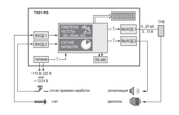 Функциональные возможности ТХ01-RS - Измерение скорости вращения и времени наработки.