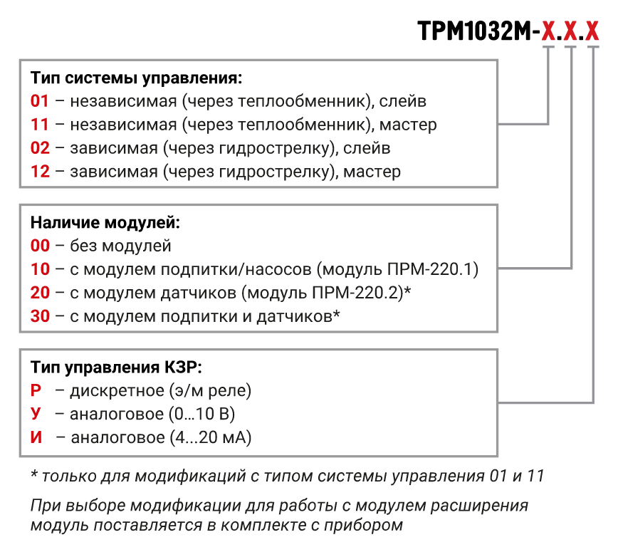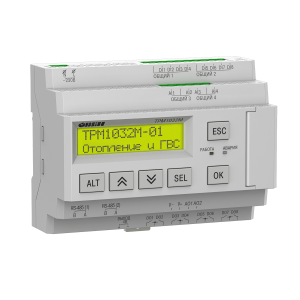 Описание Описание контроллера ТРМ1032MТРМ1032М – контроллер с готовыми алгоритмами для регулирования температуры в системах отопления и ГВС. Предназначен для применения в индивидуальных и центральных тепловых пунктах (ИТП и ЦТП) и котельных. Поддерживает управление от 1 до 15 контуров потребителей в зависимых и независимых системах. Контроллер отопления и ГВС регулирует температуру по заданной уставке или отопительному графику, управляет запорно-регулирующим клапаном (КЗР), циркуляционными насосами, поддерживает давление в системе отопления, управляя контурами подпитки, защищает обратный теплоноситель от превышения температуры.![]() Преимущества контроллера ТРМ1032MУниверсальность контроллера для отопленияТРМ1032М – специализированный контроллер с готовыми алгоритмами для поддержания температуры в системах отопления и ГВС. Подходит для применения в ИТП, котельных и ЦТП. Простота контроллера для отопления Благодаря встроенному алгоритму, готовой документации, русскоязычному меню, интуитивно понятному интерфейсу и возможности настройки через ПК, прибор вводится в эксплуатацию в течении часа. Безопасность контроллера для отопления ТРМ1032М своевременно предупреждает оператора о неполадках в работе системы и в критической ситуации останавливает управление исполнительными механизмами. Погодозависимость контроллера для отопления Погодозависимость Для поддержания комфортного микроклимата в помещениях ТРМ1032М использует погодозависимое регулирование температуры отопительных контуров. Экономичность контроллера для отопления В режимах экономии прибор ориентируется на работу по оптимальной уставке в дневное или ночное время, а также в выходные дни, снижая расходы на тепловую энергию в периоды низкого водоразбора. Диспетчеризация контроллера для отопления Интерфейс RS-485 и открытая карта регистров делают возможным включение ТРМ1032М в систему удаленной диспетчеризации OwenCloud, SCADA, OPC и др. Или для визуализации на панели оператора. Для регулирования отопительных контуров ТРМ1032М осуществляет вычисление уставки по заданному пользователем отопительному графику. Это позволяет поддерживать комфортную температуру в помещениях при изменении температуры наружного воздуха, соблюдая баланс между поступающим и уходящим теплом. В случае обрыва или поломки уличного датчика контроллер вычислит уставку отопления, исходя из среднесуточной уличной температуры, и продолжит регулирование. График уставки можно отключить и регулировать температуру в контуре по фиксированному значению. ТРМ1032М регулирует температуру обратного теплоносителя в соответствии с графиком, заданным пользователем в настройках прибора. Поддержание температуры обратной сетевой воды позволяет избежать штрафных санкций от теплоснабжающей организации. ТРМ1032М поддерживает управление независимыми системами теплоснабжения через теплообменник (алгоритмы 11 и 01) и зависимыми системами через гидрострелку (алгоритмы 12 и 02). Благодаря возможности включения контроллеров в распределенную сеть управления, объединив их между собой по RS-485, достигается возможность регулирования до 10 независимых контуров и до 15 зависимых. Возможности контроллеров ТРМ1032МФункциональные возможности: