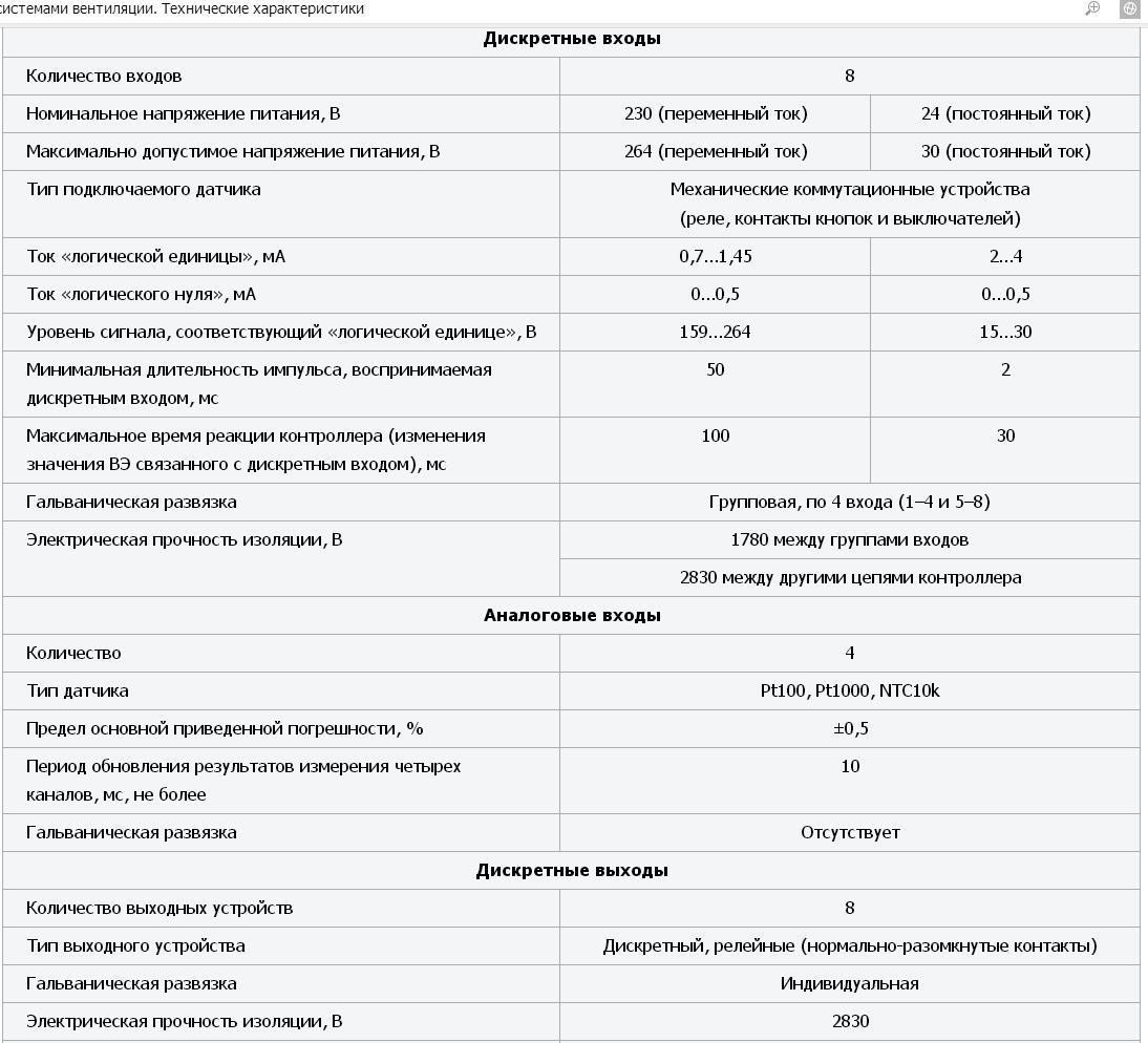 Описание ТРМ1033 контроллер систем вентиляцииНазначение ТРМ1033ТРМ1033 – это специализированный контроллер с готовыми алгоритмами для автоматизации приточной вентиляции.![]() Стандартные позиции (цены указаны с НДС) ТРМ1033-220.01.00 10 800,00 ₽ ЗАКАЗАТЬ На заказ (цены указаны с НДС) ТРМ1033-220.05.00 10 800,00 ₽ ЗАКАЗАТЬ ТРМ1033-220.03.00 10 800,00 ₽ ЗАКАЗАТЬ ТРМ1033-24.01.00 10 800,00 ₽ ЗАКАЗАТЬ ТРМ1033-220.04.00 10 800,00 ₽ ЗАКАЗАТЬ ТРМ1033-24.02.00 10 800,00 ₽ ЗАКАЗАТЬ ТРМ1033-24.03.00 10 800,00 ₽ ЗАКАЗАТЬ ТРМ1033-24.04.00 10 800,00 ₽ ЗАКАЗАТЬ ТРМ1033-24.05.00 10 800,00 ₽ ЗАКАЗАТЬ ТРМ1033-220.02.00 10 800,00 ₽ ЗАКАЗАТЬ Контроллер позволяет управлять стандартными узлами вентиляции для достижения максимально комфортной температуры приточного воздуха для помещений: Приточная вентиляция с водяным калорифером нагрева Приточная вентиляция с электрическим нагревом. (до 3-х ступеней) Приточная вентиляция с водяным нагревом и водяным охлаждением Приточная вентиляция с водяным нагревом и фреоновым охлаждением Приточная вентиляция с электрическим нагревом и фреоновым охлаждением Количество готовых алгоритмов и возможность управления узлами вентиляции (например, увлажнитель, резервный вентилятор, рециркуляция и т.д.) будет увеличиваться. ![]() Функциональные возможности регулятора ТРМ1033Контроллер ТРМ1033 имеет следующие возможности: Поддержание температуры приточного воздуха. Защита технологического оборудования : водяного и электрического калорифера, насоса контура водяного калорифера, компрессорно-конденсаторного блока. Контроль обратной воды. Обогрев воздушного клапана с помощью ТЭНа или периметрального кабеля. Контроль по перепаду давления на вентиляторе. Работа с датчиками Pt100, Pt1000, Ni1000, NTC10k. Контроль засоренности фильтра. Управление насосом в контуре водяного калорифера. Работа по протоколу Modbus, через интерфейс RS-485. Параметры регулятора ТРМ1033![]() ![]() Схема контроллера ТРМ1033![]() Купить контроллеры управления системой вентиляции ТРМ1033 по выгодной ценеКупить по низкой цене контроллеры ТРМ1033 в Ростове-на-Дону, Ростовской области, в Краснодаре и Краснодарском Крае, Ставрополе и Ставропольском Крае, Волгограде и Волгоградской области, в городах: Нальчик, Владикавказ, Грозный, Махачкала и других городах Юга России можно в нашей компании. Все покупатели могут получить бонусы и подарки! Доставка контроллеров системой вентиляции ТРМ1033 в города Юга РоссииМы доставим контроллеры ТРМ1033 в течении одного - двух дней в города: Ростов, Волгодонск, Сальск, Краснодар, Ставрополь, Невинномысск, Минеральные Воды, Кисловодск, Пятигорск, Железноводск, Тихорецк, Тимашевск, Сочи, Новороссийск, Анапа, Туапсе, Геленджик, Ейск, Майкоп, Армавир, Волгоград, Элиста, Астрахань, Таганрог, Новочеркасск, Азов, Шахты, Черкесск, Нальчик, Владикавказ, Грозный, Махачкала. Техническая документация и гарантии на все типы контроллеровНа все виды контроллеров, используемых для управления системами отопления и водоснабжения, вентиляции наша компания представляет полный пакет сопроводительных документов и технической документации. Все приборы имеют длительный срок эксплуатации и обеспечиваются заводской гарантией и сервисным обслуживанием. Инженеры нашей компании готовы предоставить самую подробную информацию об использовании контроллеров отопления, схемах их подключения, настройках и программирования контроллеров. Похожие товары | |||||||