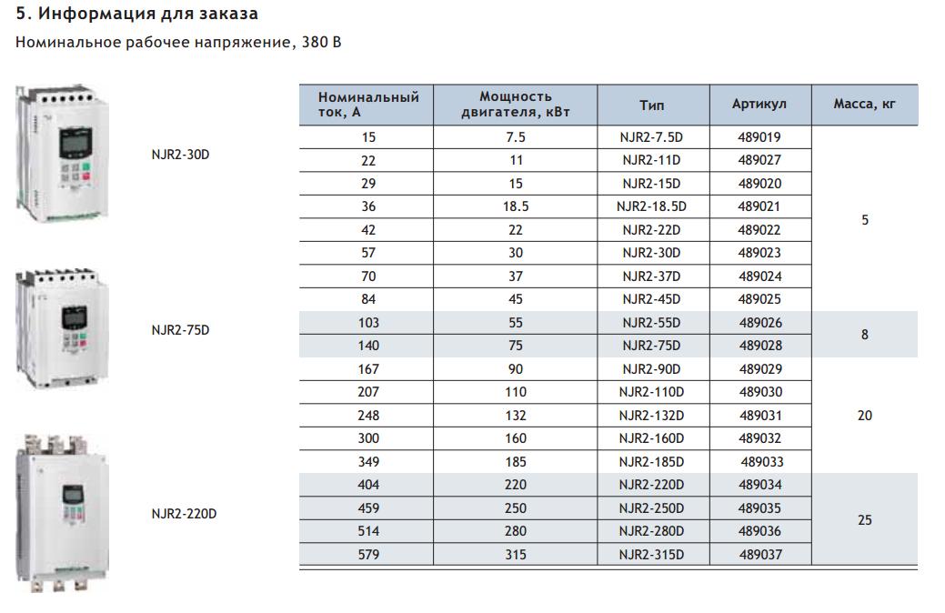 Описание Устройство плавного пуска CHINT Electric NJR2Устройство плавного пуска CHINT Electric серии NJR2 применяется для плавного пуска, остановки и защиты асинхронных электродвигателей мощностью до 315 кВт.![]() Устройство плавного пуска CHINT Electric серии NJR2 имеет пять различных режимов пуска и используется для применения в конвейерах, дробилках, центрифугах, вентиляторах и других механизмах, требующих плавный пуск и остановку. ![]() Устройство плавного пуска NJR2 предназначено для плавного пуска, остановки и защиты асинхронных электродвигателей. Соответствует: IEC 60947-4-2. ![]() Область применения устройств плавного пуска электродвигателей: механизмы различного назначения, требующие плавного пуска и остановки, например насосы для перекачки воды и технологических продуктов конвейеры, дробилки, мешалки, мельницы центрифуги, вентиляторы с большой инерционной массой и т.д Основные технические параметры устройства плавного пуска CHINT Electric серии NJR2 Трехфазное напряжение питания, В 380 ± 15% Диапазон входной частоты 50/60Гц (±2%) Диапазон мощности, кВт 7,5-315 Номинальный рабочий ток, А 15-579 Ограничение пускового тока (50-500)%Ie Окружающая температура эксплуатации от -10 до +40°С Высота над уровнем моря до 1000 М (номинальный ток) ![]() Таблица для выбора устройства плавного пуска CHINT Electric серии NJR2 ![]() ![]() ![]() Купить устройства пуска, инверторы и преобразователи CHINT по выгодной ценеКупить по низкой цене приводное оборудование CHINT в Ростове-на-Дону, Ростовской области, в Краснодаре и Краснодарском Крае, Ставрополе и Ставропольском Крае, Волгограде и Волгоградской области, в городах: Нальчик, Владикавказ, Грозный, Махачкала и других городах Юга России можно в нашей компании. Все покупатели могут получить бонусы и подарки! Доставка инверторов, преобразователей, пусковые устройства CHINT в города Юга РоссииМы доставим оборудование CHINT в города: Ростов, Краснодар, Волгоград, Элиста, Астрахань, Ставрополь, Таганрог, Новочеркасск, Азов, Шахты, Волгодонск, Сальск, Тихорецк, Тимашевск, Сочи, Новороссийск, Анапа, Туапсе, Геленджик, Ейск, Майкоп, Армавир, Невинномысск, Минеральные Воды, Кисловодск, Пятигорск, Железноводск, Черкесск, Нальчик, Владикавказ, Грозный, Махачкала. Похожие товары | |||||||