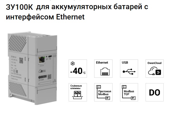 Описание Зарядные устройства ОВЕН ЗУ100К предназначены для непрерывного подключения к аккумуляторным батареям и поддержания их в режиме постоянной готовности. В составе щита управления устройства могут использоваться для работы с дизельными, бензиновыми и газовыми электростанциями для заряда стартерных свинцово-кислотных АКБ или для питания различного промышленного оборудования с зарядом литиевых АКБ. ![]() Особенности и преимущества: ОВЕН ЗУ100К Широкий диапазон питания переменного тока 90…264 В. Диапазон подстройки выходного напряжения (Uвых) от 15 до 29,4 В или от 7,5 до 14,65 В. Ограничение выходного тока 125 % от номинального значения (Iвых) 5 А или 8,5 А. Рабочий диапазон температур: -40…+60 °С – без снижения рабочих характеристик. Удобный монтаж в шкаф автоматики: компактный корпус шириной 52 мм. Многоступенчатый метод заряда батарей. Поддержка свинцово-кислотных и литий-ионных аккумуляторов в режиме «Авто», поддержка других типов аккумуляторов в режиме «Пользовательский». Встроенные защиты: по выходному току, от перегрева прибора и внешних заряжаемых АКБ, КЗ, от инверсии полярности на выходе (переполюсовки), автоматический перезапуск после «Аварии». Контроль наличия внешней АКБ, измерение внешней температуры АКБ – работа с датчиком температуры. Световая индикация режимов работы прибора. Конфигурирование и регулировка напряжения и выходного тока с помощью Owen Configurator по Ethernet или USB Type-C. ![]() ![]() Похожие товары | |||||||